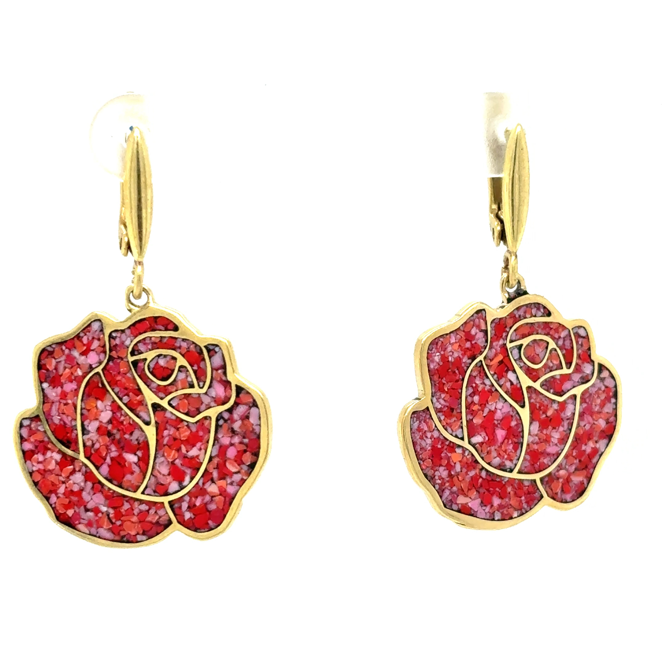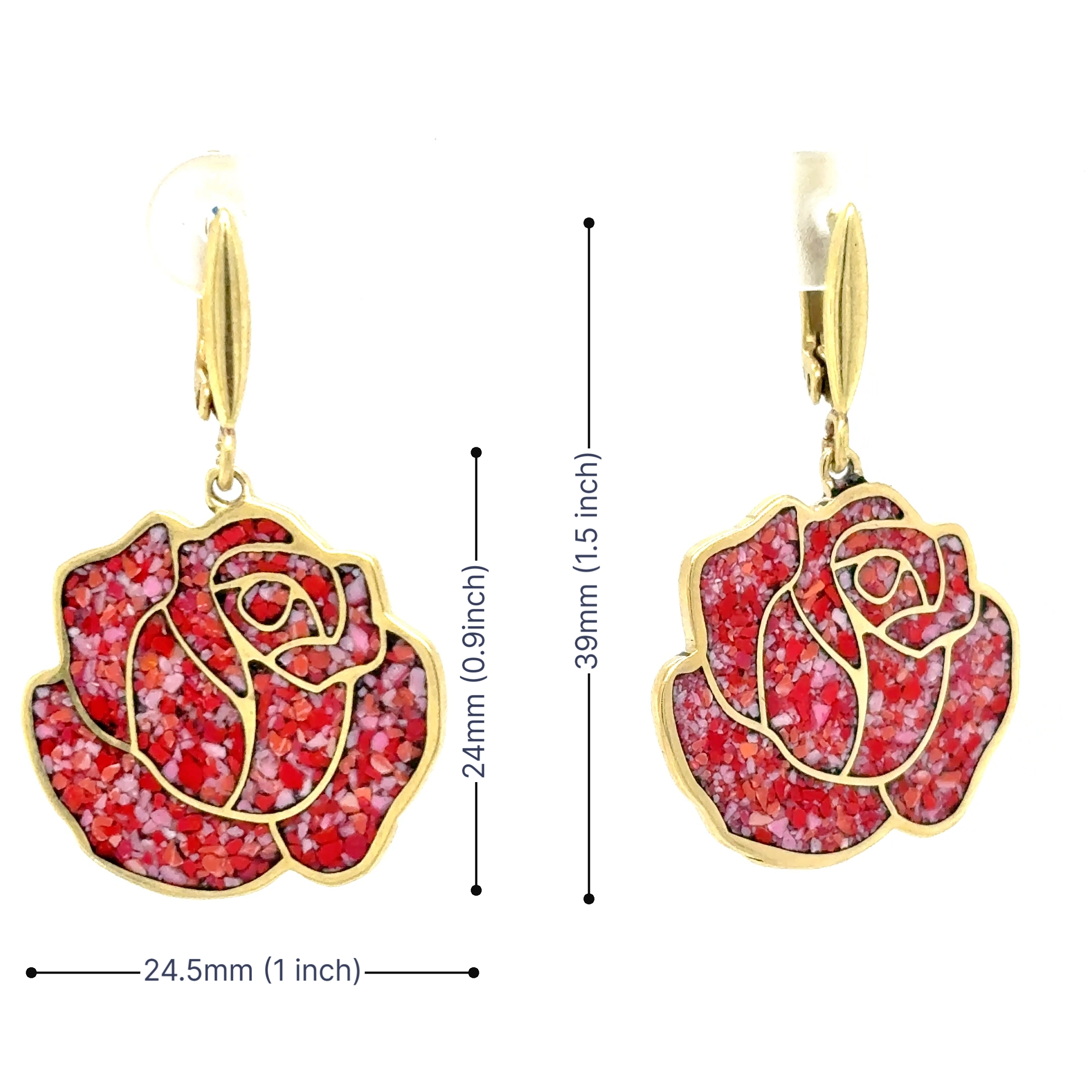 Handcrafted Micro Mosaic Drop Earrings – Pink and Red Rose Filigree