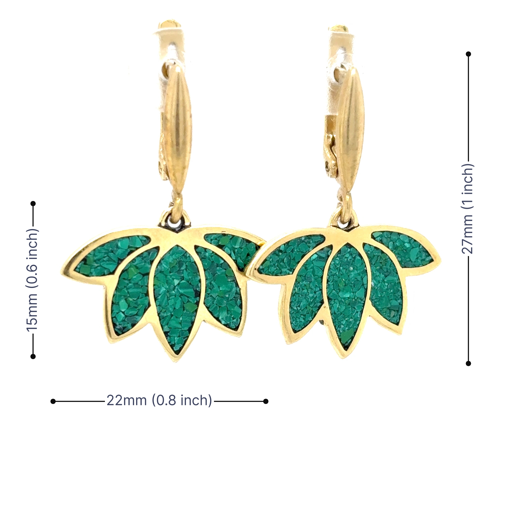 Elevate your style with these stunning handcrafted earrings, featuring a vibrant green turquoise micro mosaic inlay set within a graceful solid brass bird/dove-shaped frame. Delicate brass filigree detailing covers the wings, depicting elegant scrollwork, creating an inspiring interplay of color and texture.