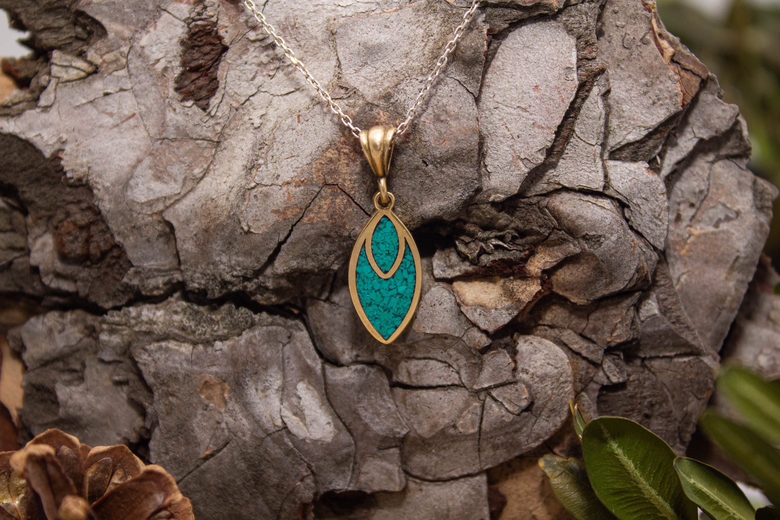 Brass Micro Mosaic Necklace with Color C06 (Green Turquoise)