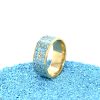 Color Palette: Vibrant light blue turquoise and warm golden brass