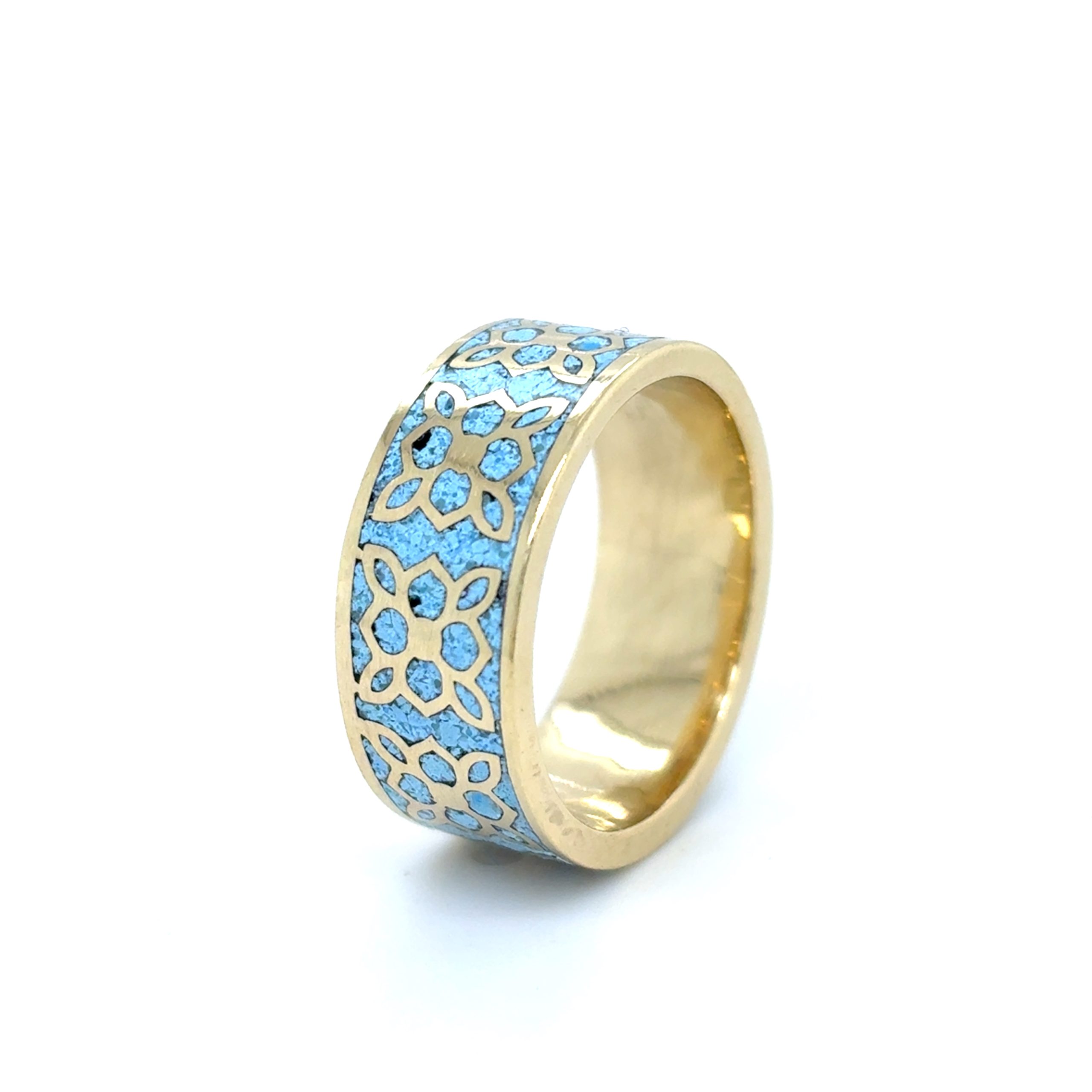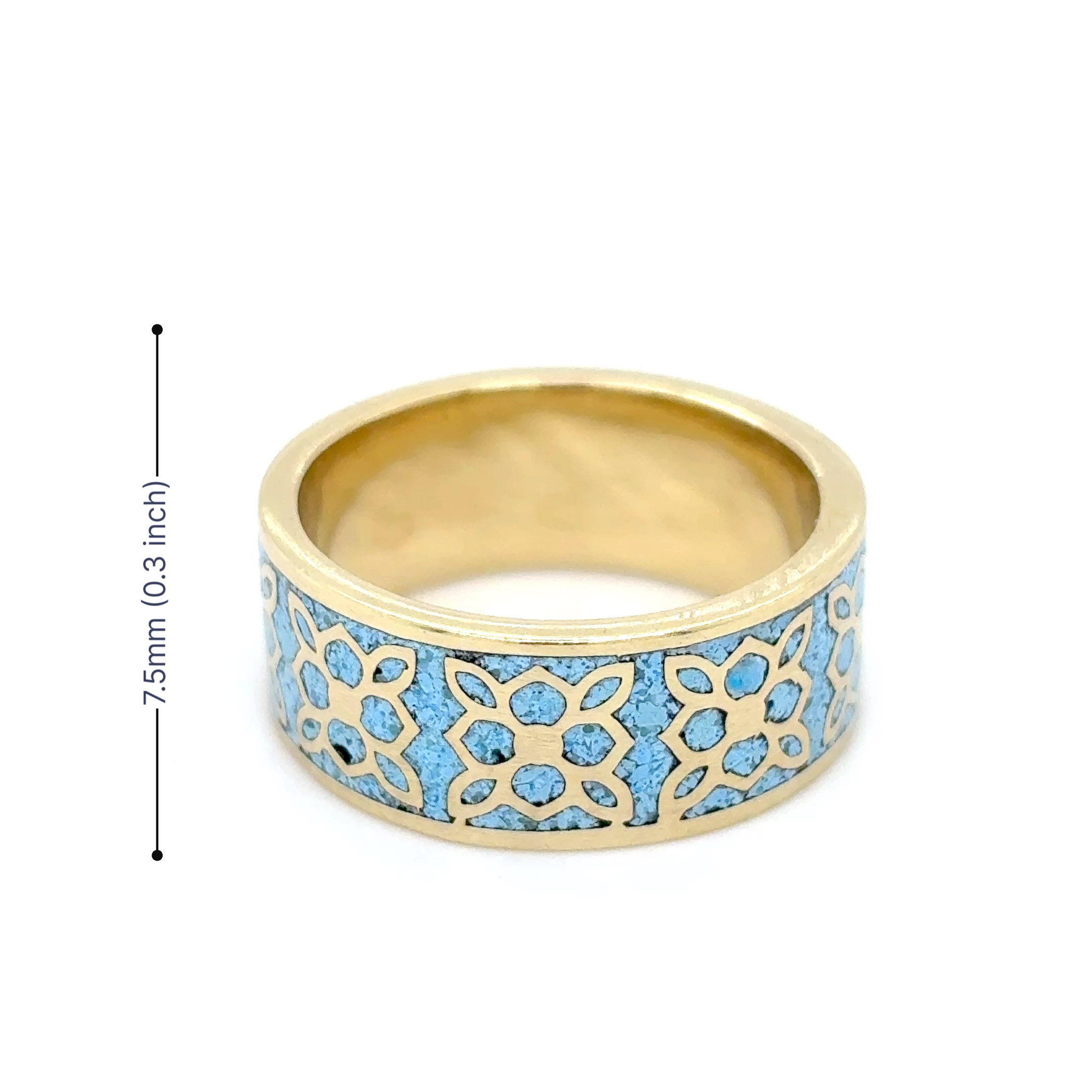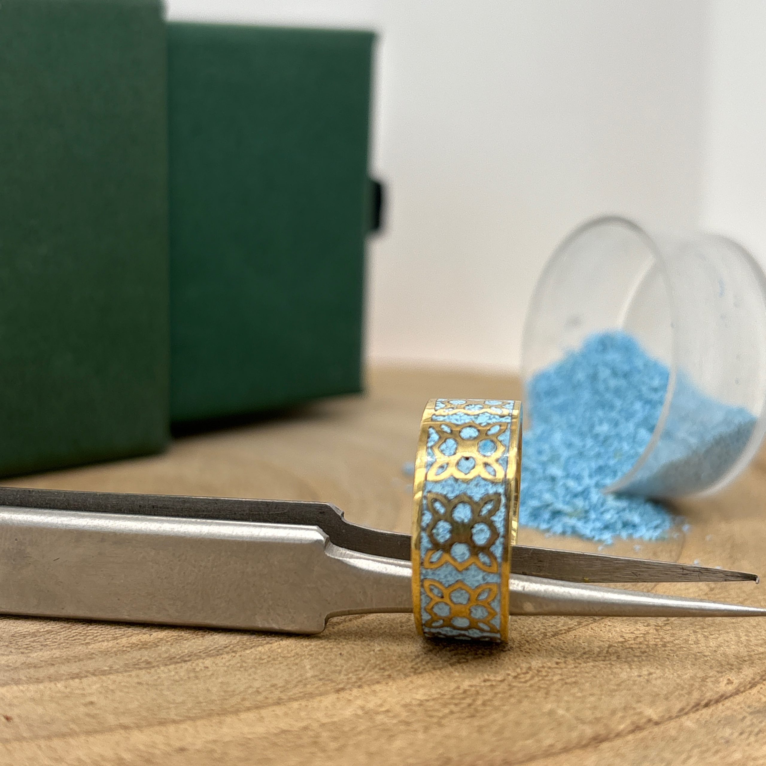 With interlocking star-like forms set in vibrant light blue turquoise mosaic, Sapphire Constellation conjures the tranquil brilliance of a bright summer sky, captured in geometric harmony. The pattern suggests infinite expansion and unity, evoking both ancient mosaics and cosmic constellations seen above a clear ocean.