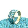 • Material: Polished brass with blue and green turquoise mosaic inlay